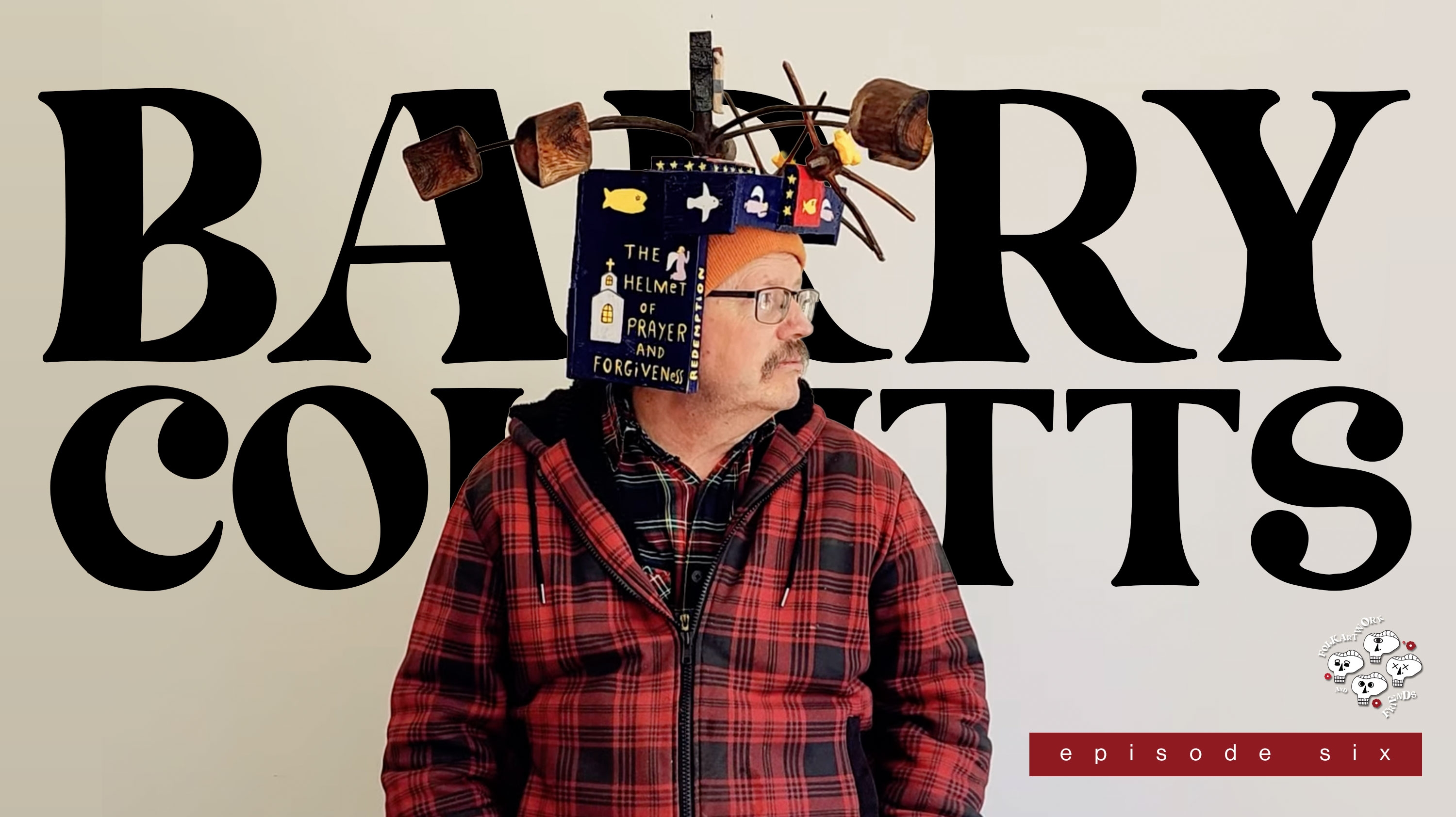 In the sixth episode of FolkArtwork and Friends, I am absolutely honored to talk with Nova Scotia’s own Barry Colpitts, folk artist and wood carver, who creates some of the most magnificent works of art in North America. Thanks to Audrey Sanford of Black Sheep Gallery for setting this up, I get to sit down with Barry and hear about his beginnings, including his lack of relationship to art when he was younger, his start in wood carving while working as a prison guard, some of his “racy” mermaid carvings when he was in his twenties, plus he brings his one of a kind Prayer Helment Whirligig to show off.
